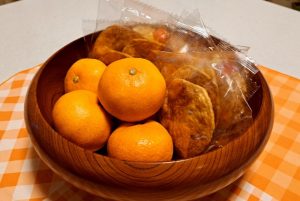 先ずは形から、やっぱり「みかんとおせんべい」はマストアイテムでございますね!置きましょう。
