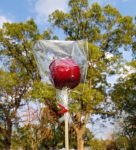 今日日、お祭りの屋台でもこんな立派なりんご飴は見かけません。