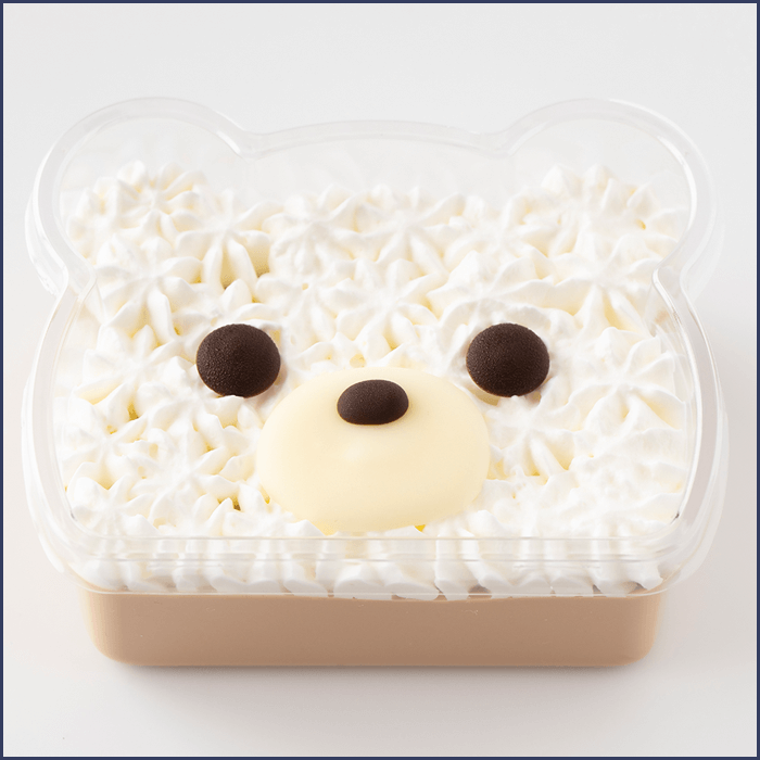 濃厚なミルクティーのパンナコッタにシャンティをしぼり、可愛らしいシロクマに仕立てました。