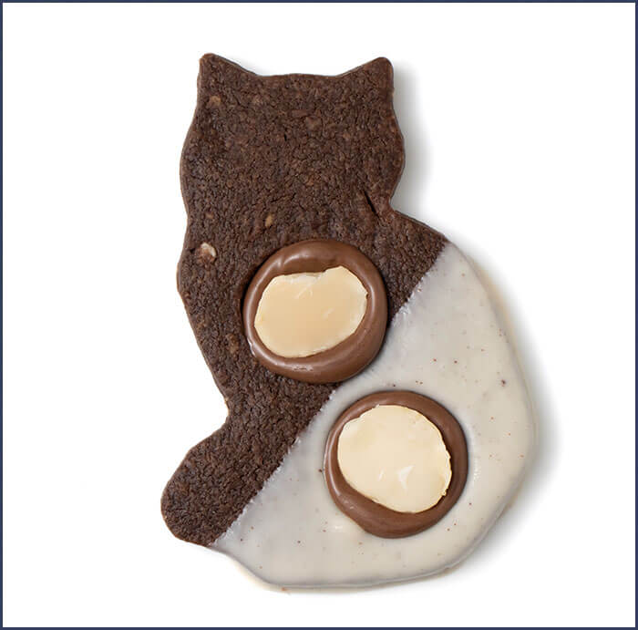 幸せを呼びよせるフクロウのシルエットクッキーをチョコ味とバター味の2種類でご用意致しました。アレルギー:小麦・乳・アーモンド