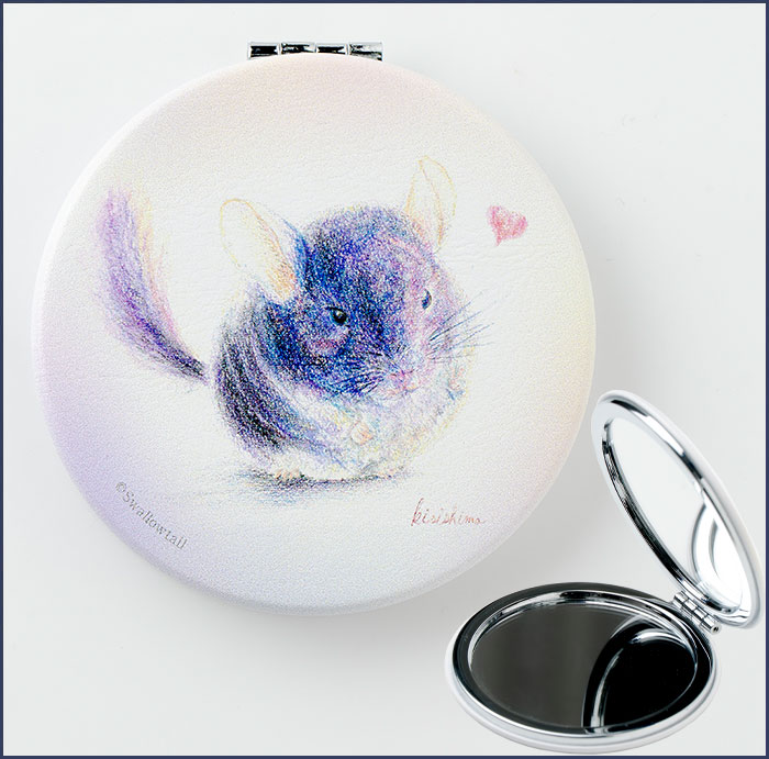 桐島が描いた、愛らしい「チンチラ」がプリントされたオリジナルミラーをご用意いたしました。